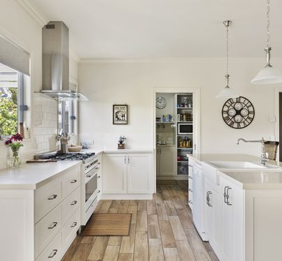 - Stunning kitchen with butlers pantry boasting quality fittings and stone benchtops.