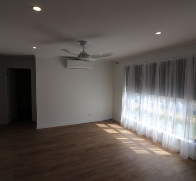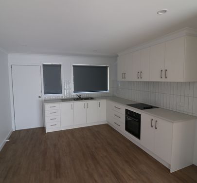 - Stunning new kitchen with meals and living.