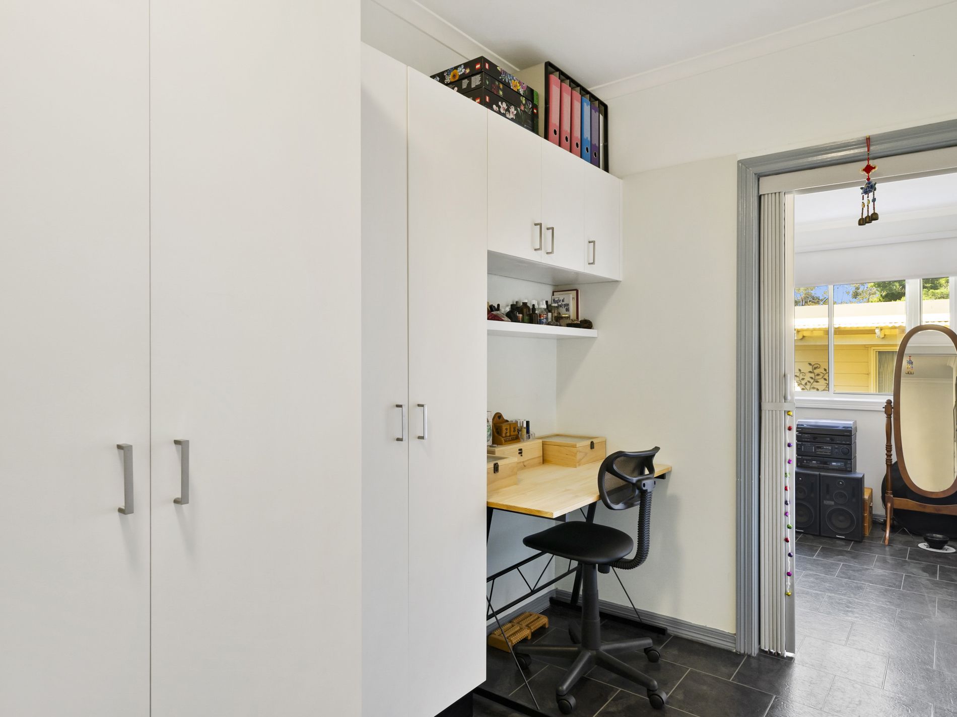 - Walk through study nook with extra storage space.
