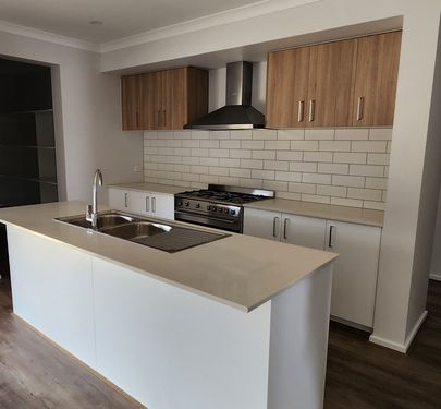 - Open plan kitchen, dining and family area.