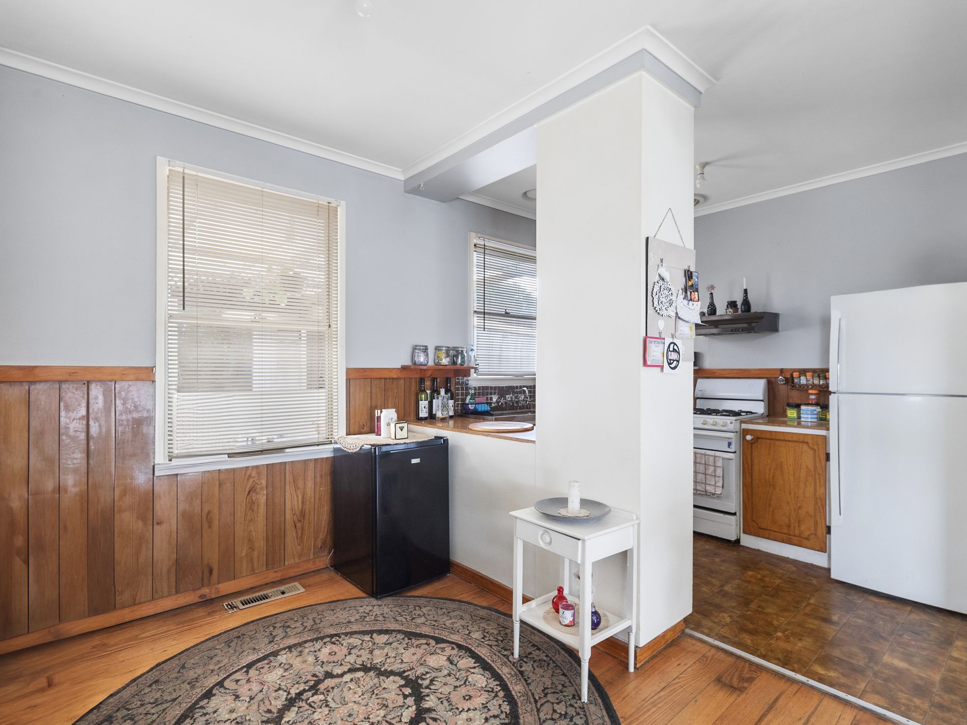 Kitchen with meals area and adjoining living.