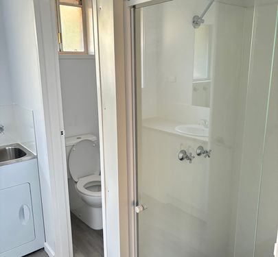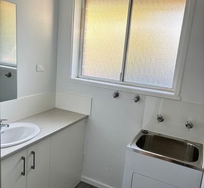 2 bedrooms with robes, combined bathroom/laundry, open car space and kitchen with family area.