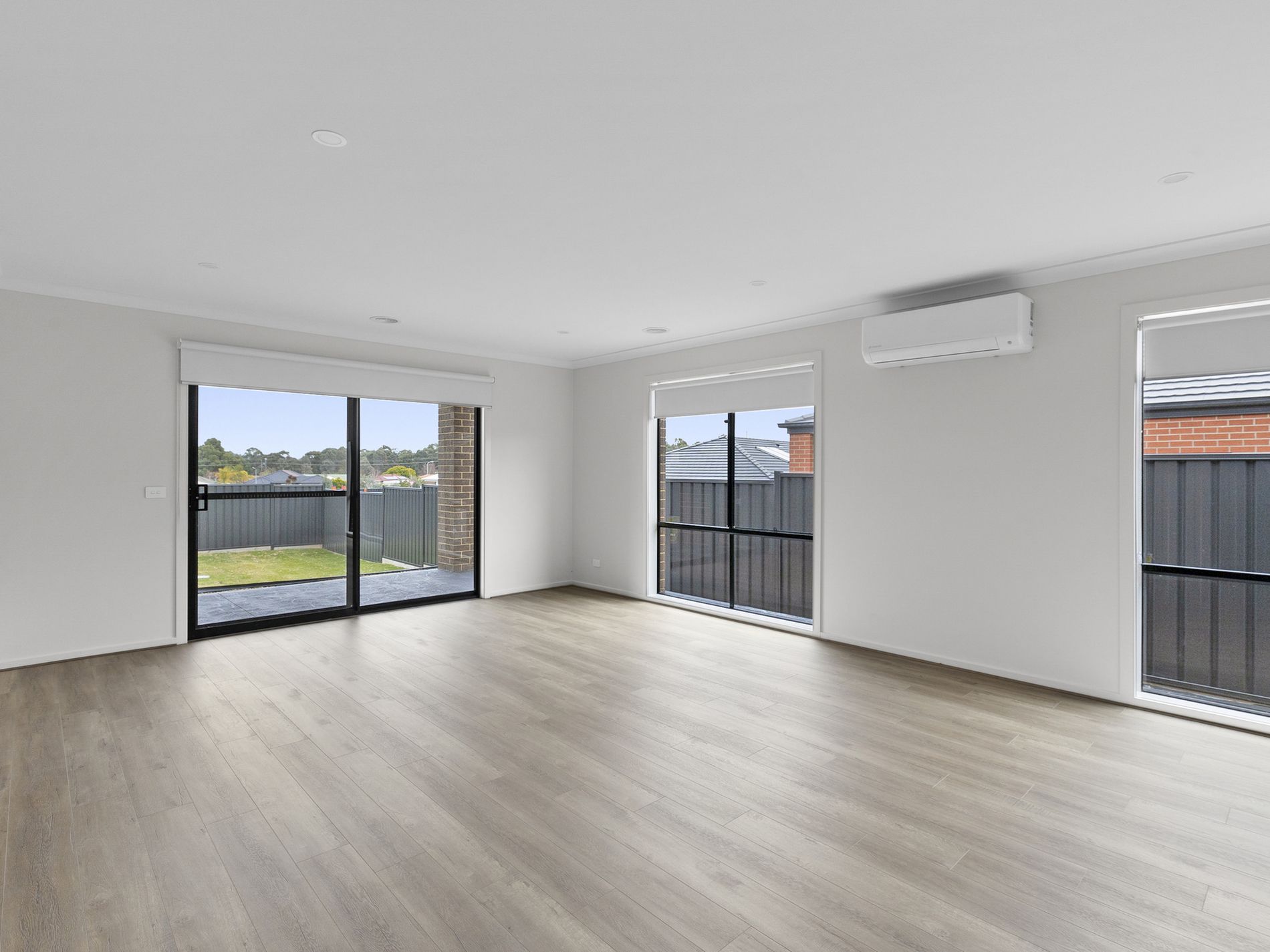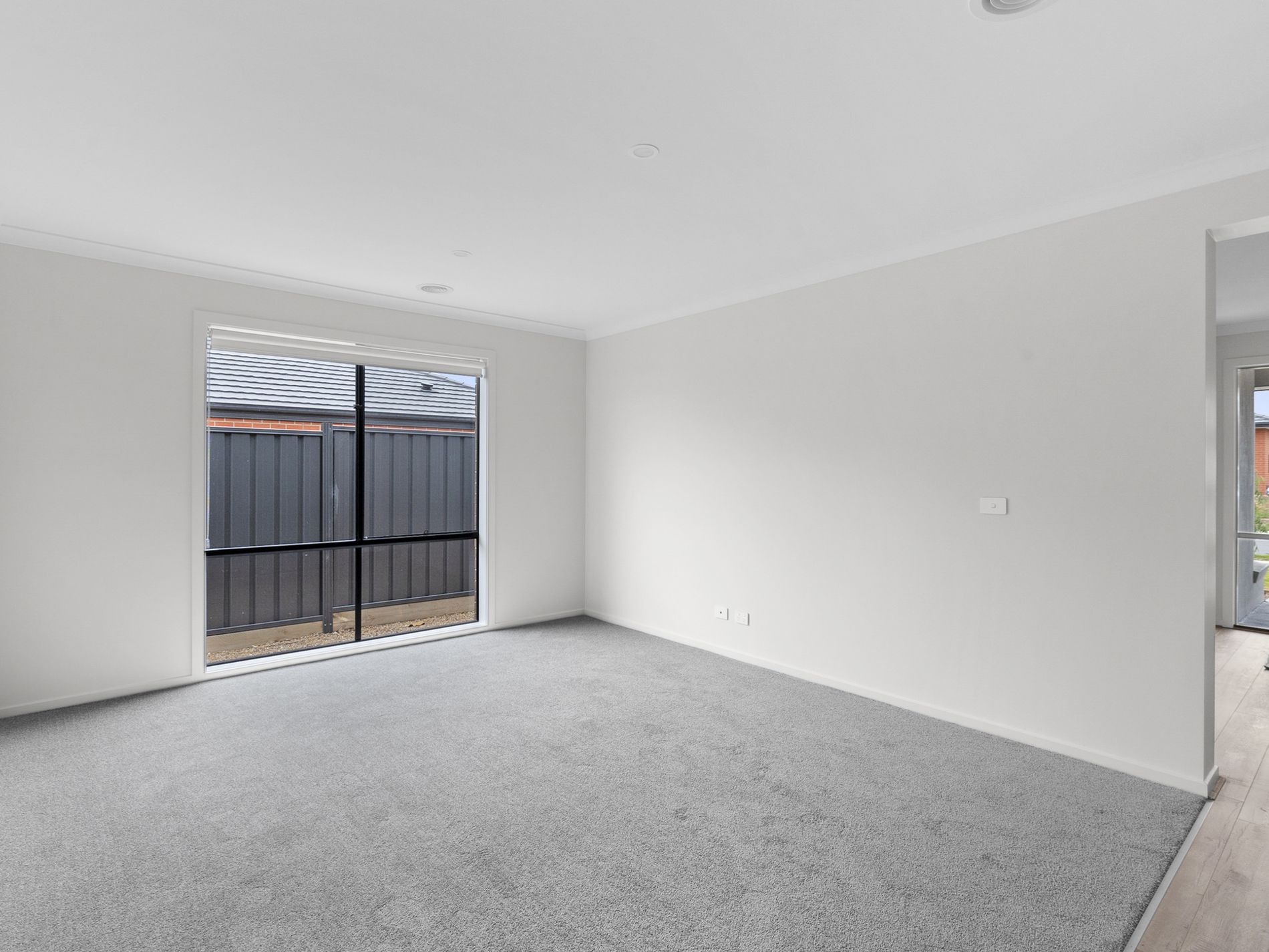 - open plan kitchen, dining and family area with neutral colour scheme and views to the rear yard.