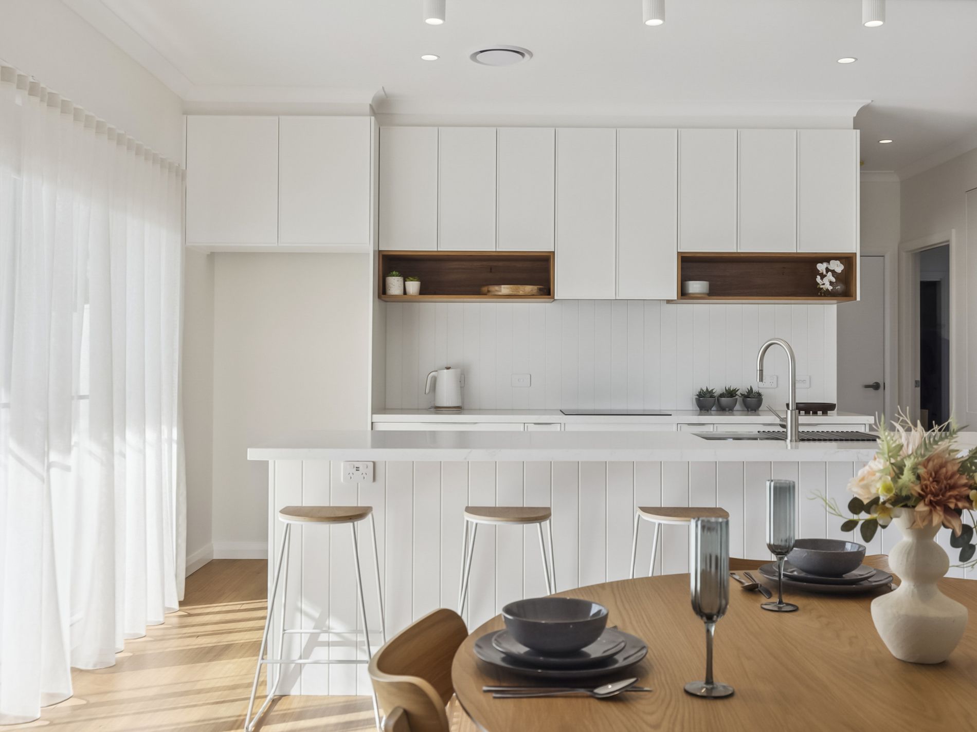 - Bright & airy, open plan kitchen & additional pantry, dining and living space.