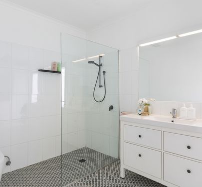 - Large, combined bathroom and laundry