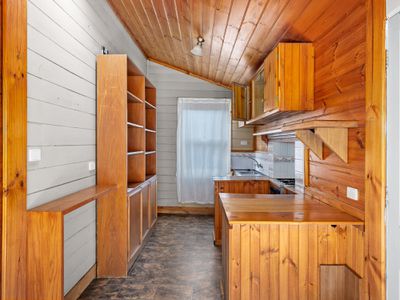 A welcoming timber kitchen at the rear, complete with adjoining dining area