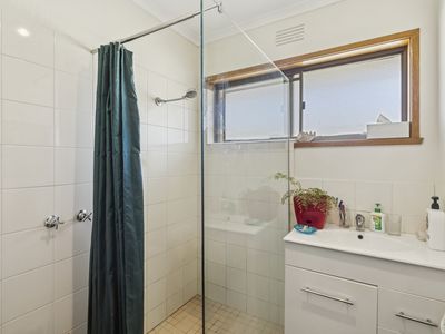Step inside to a light-filled kitchen and dining area that opens to a comfortable lounge room with views toward the street. Both bedrooms are generously sized and include built-in robes, while the central bathroom features a large walk-in shower and additional linen storage.
