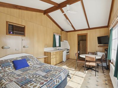 Adding a further layer of versatility, a separate self-contained cabin offers refined guest accommodation or premium short-stay potential. Featuring an open-plan kitchenette and living area, a double bedroom space, and an additional bunk room with four bunks, it comfortably hosts family and friends while maintaining privacy from the main residence.