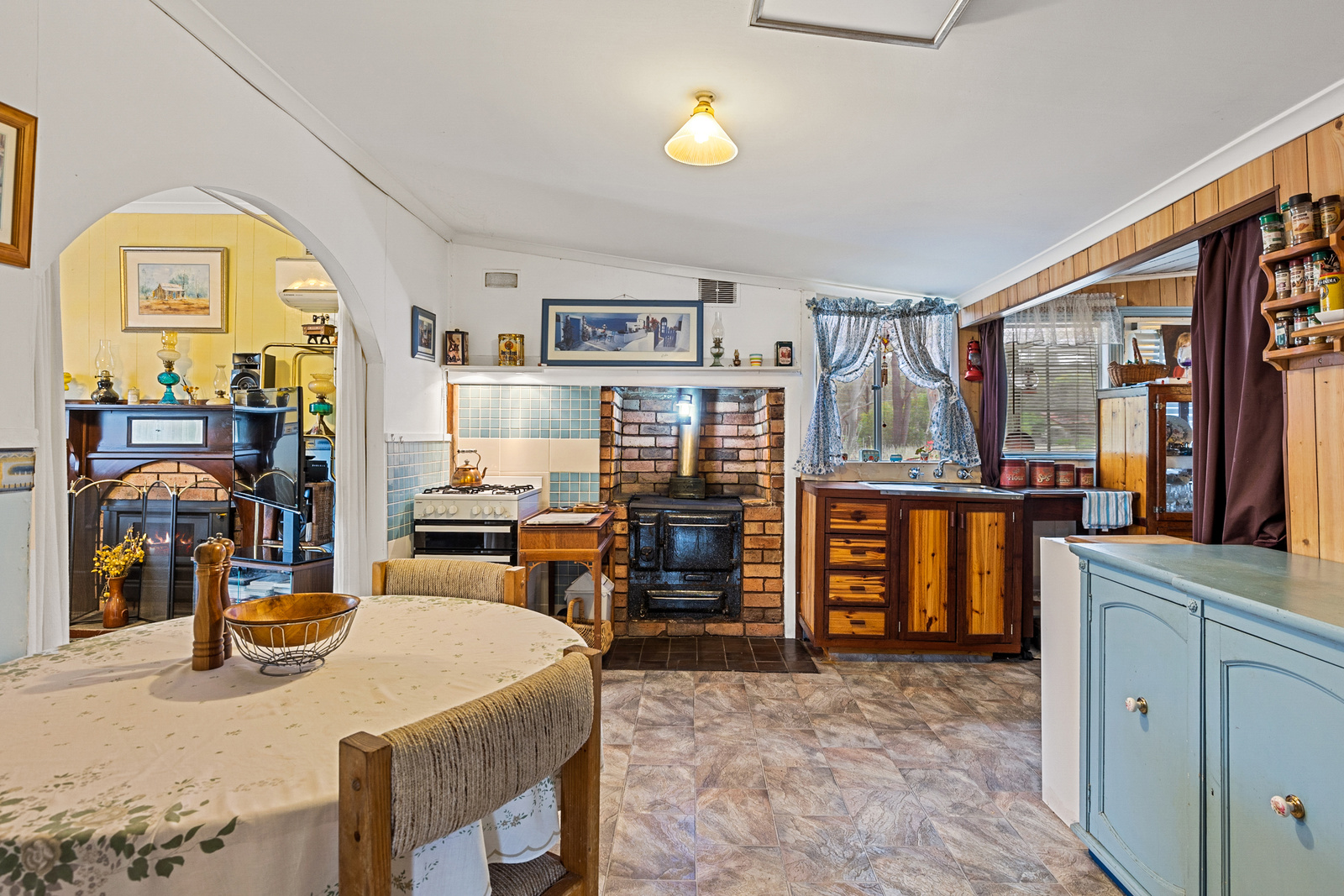 - Kitchen offering new gas top oven and combustion stove.