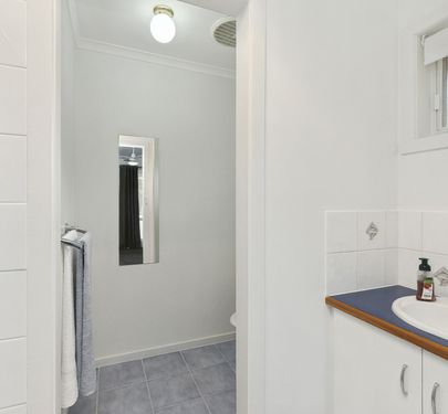 The master bedroom serves as a private retreat, featuring built-in robes and an ensuite. The two additional bedrooms are generously sized, with one featuring a built-in robe. Both share a bathroom and a separate toilet.