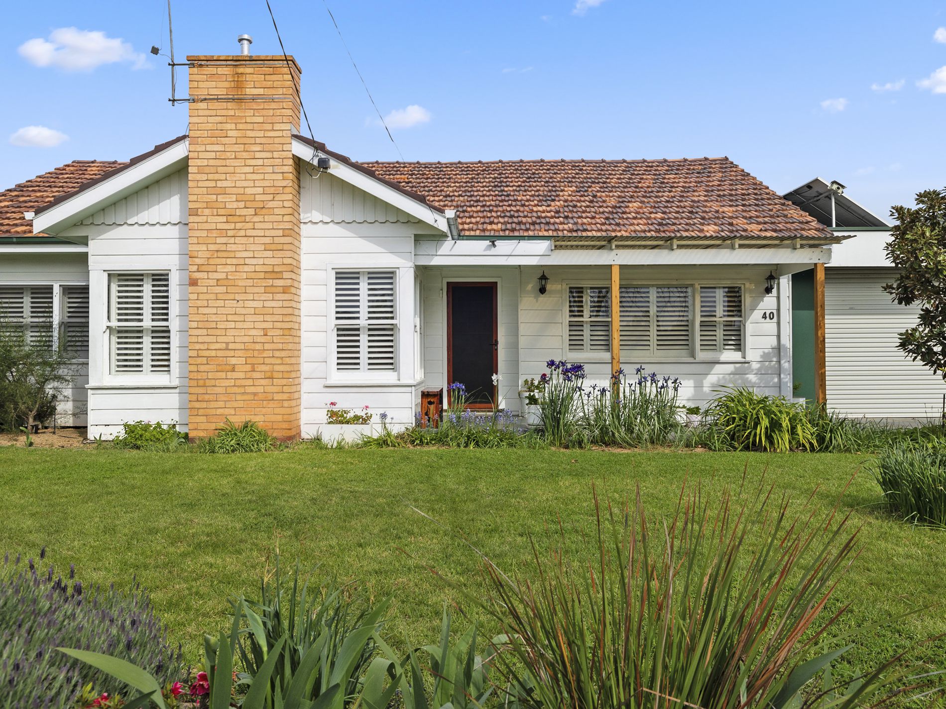Welcome to a stunning property that embodies the charm and tranquility of a cottage garden. As you arrive, the beautifully manicured gardens and elegant plantation shutters set the perfect tone for what lies within.