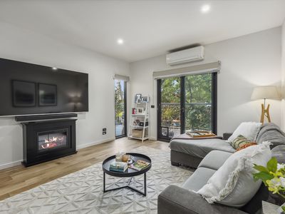 The spacious open-plan kitchen, dining, and living area is perfect for entertaining, complete with an electric heater for cozy warmth.