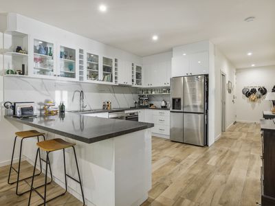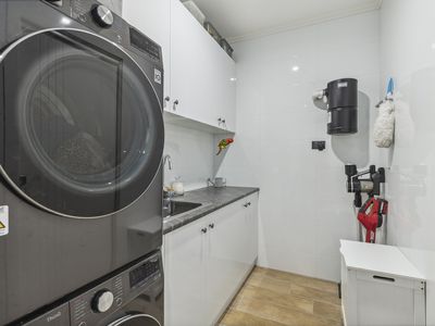 Beautiful cabinetry throughout the kitchen, designed for maximum storage, features sleek lines and thoughtful organization, making it easy to keep everything in its place. Elegance meets functionality with the marble benches & splash back not only offer a luxurious feel but are perfect for both cooking and entertaining.