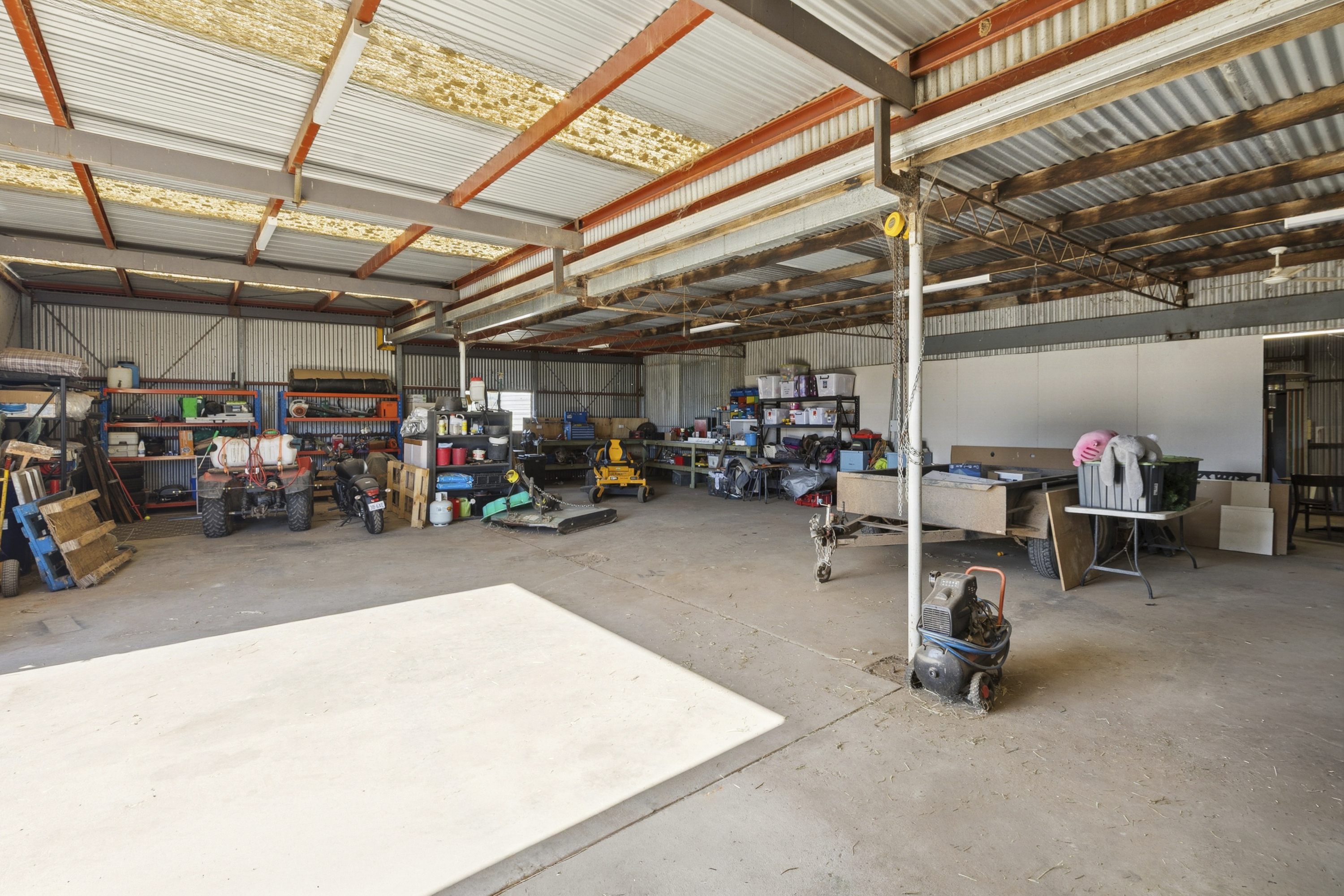 The land is fully irrigatable and thoughtfully divided into segregated paddocks, including a well-positioned front paddock ideal for holding stock. Additional features include stockyards, multiple water tanks, and substantial undercover parking and entertaining areas.