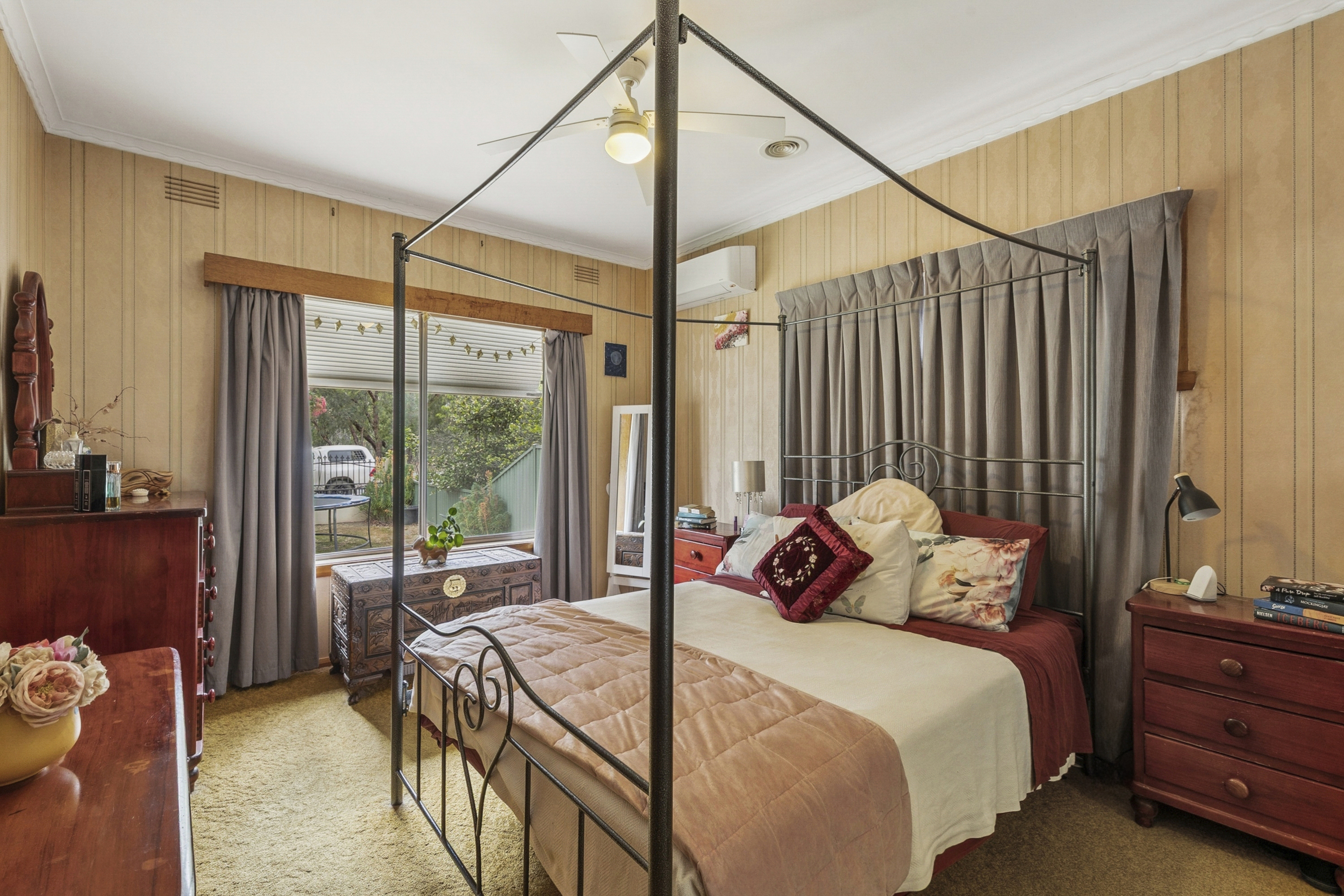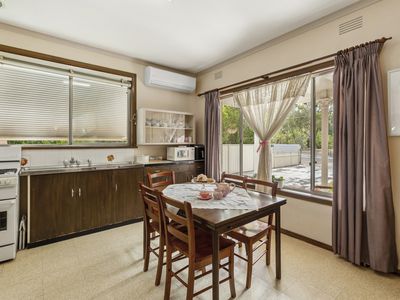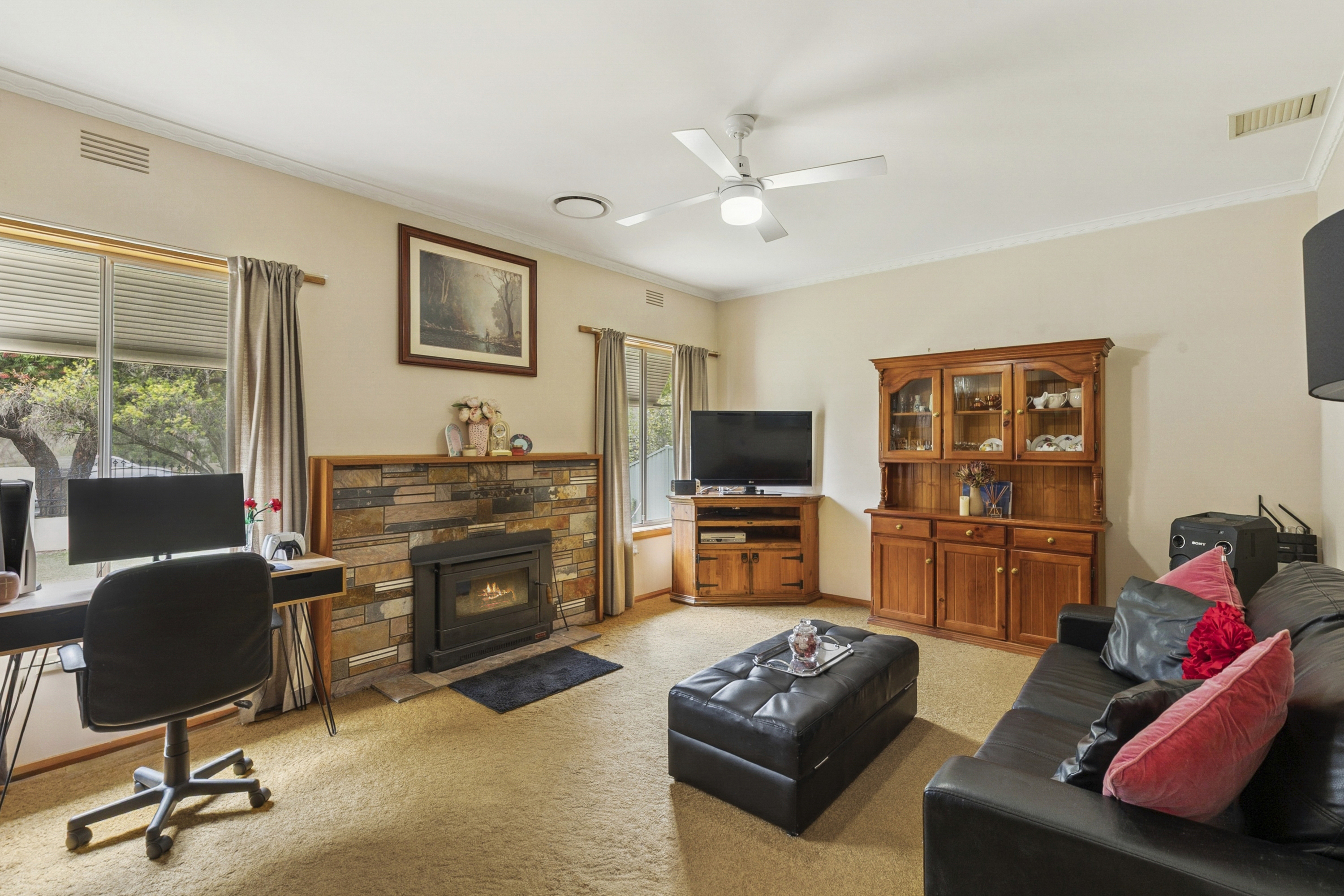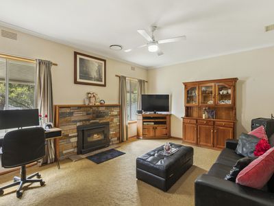 The heart of the home is the light-filled kitchen, dining, and living zone, delivering a warm yet spacious environment ideal for both everyday living and relaxed entertaining. Year-round comfort is ensured with a feature wood fire and split-system climate control.