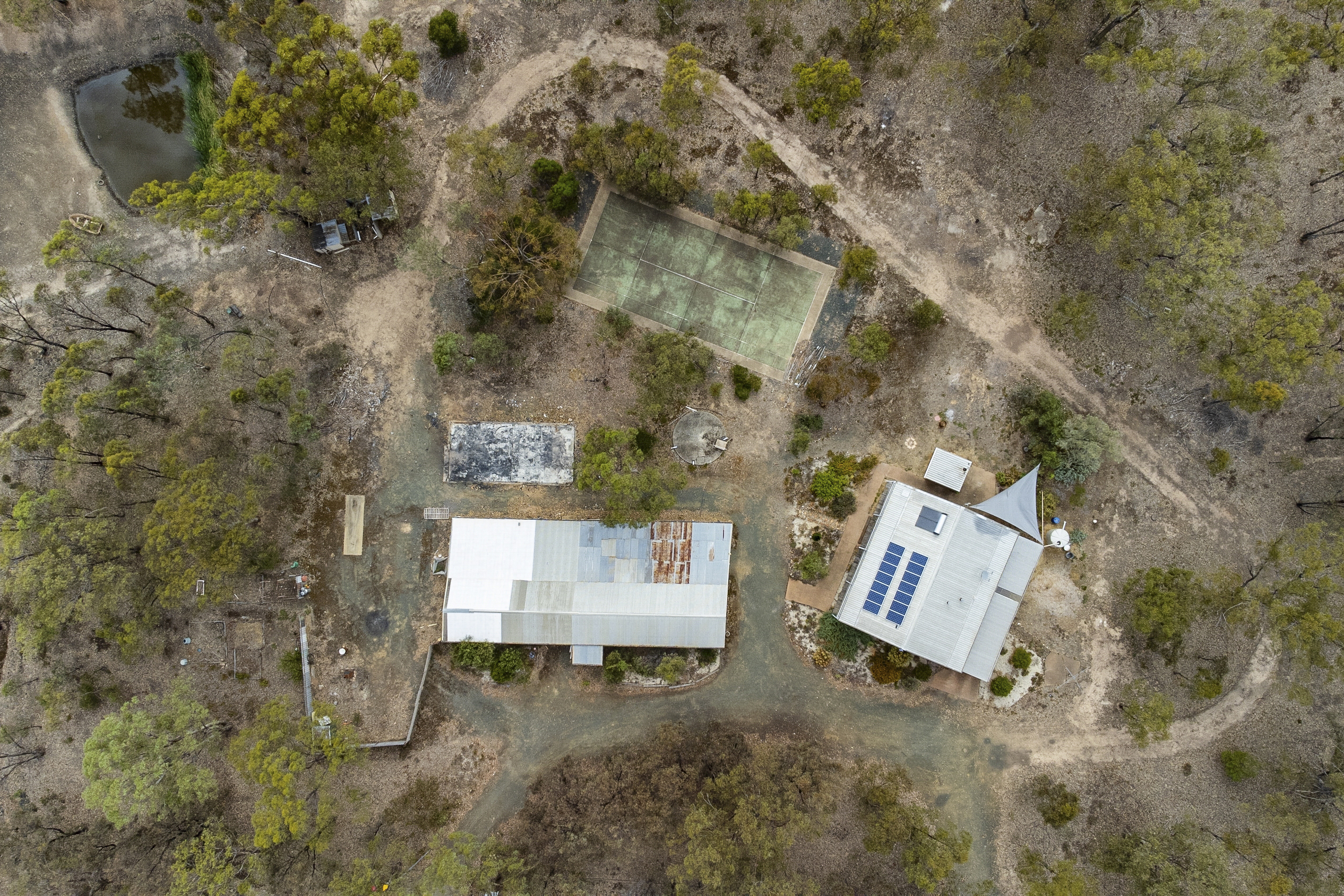 The outdoor amenities elevate this property to a true lifestyle estate. A tennis court awaits revitalisation, an underground concrete water tank supplies the home, and a charming barbecue nook creates the perfect setting for entertaining. A picturesque dam and sectioned, fenced paddocks—ideal for horses—complete the offering.