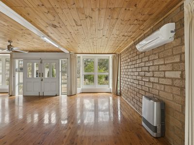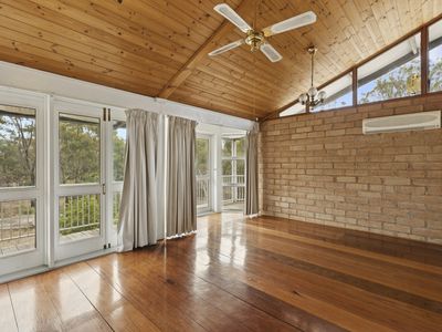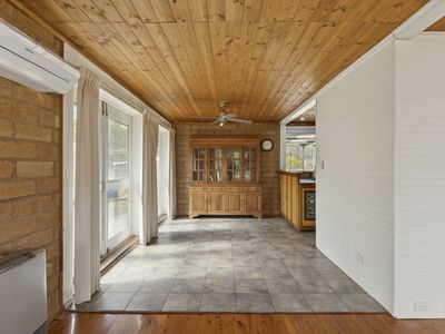 Comprising five generously proportioned bedrooms, two bathrooms and multiple living zones, the home has been thoughtfully designed to accommodate both family living and relaxed entertaining. Bathrooms on both levels enhance functionality, while beautiful timber floorboards flow throughout, adding warmth and cohesion.