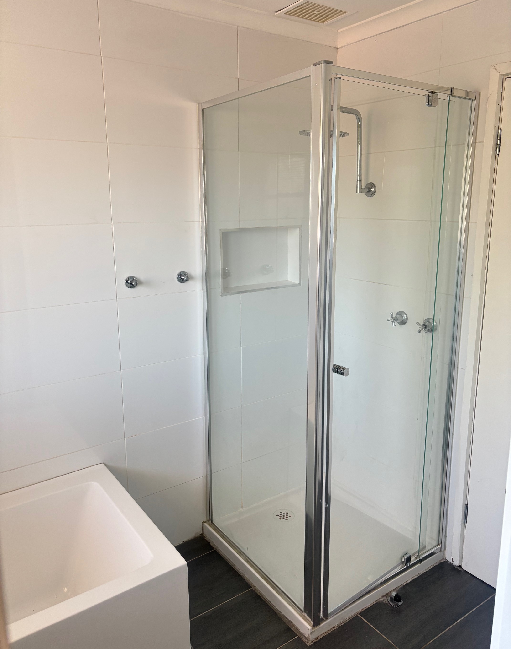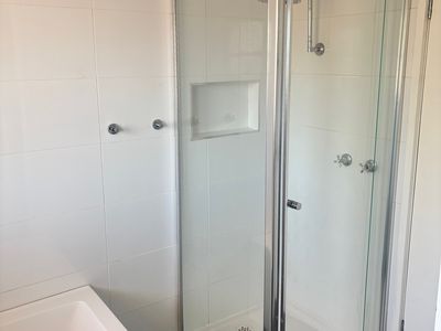 - Tidy bathroom, with bath and separate shower