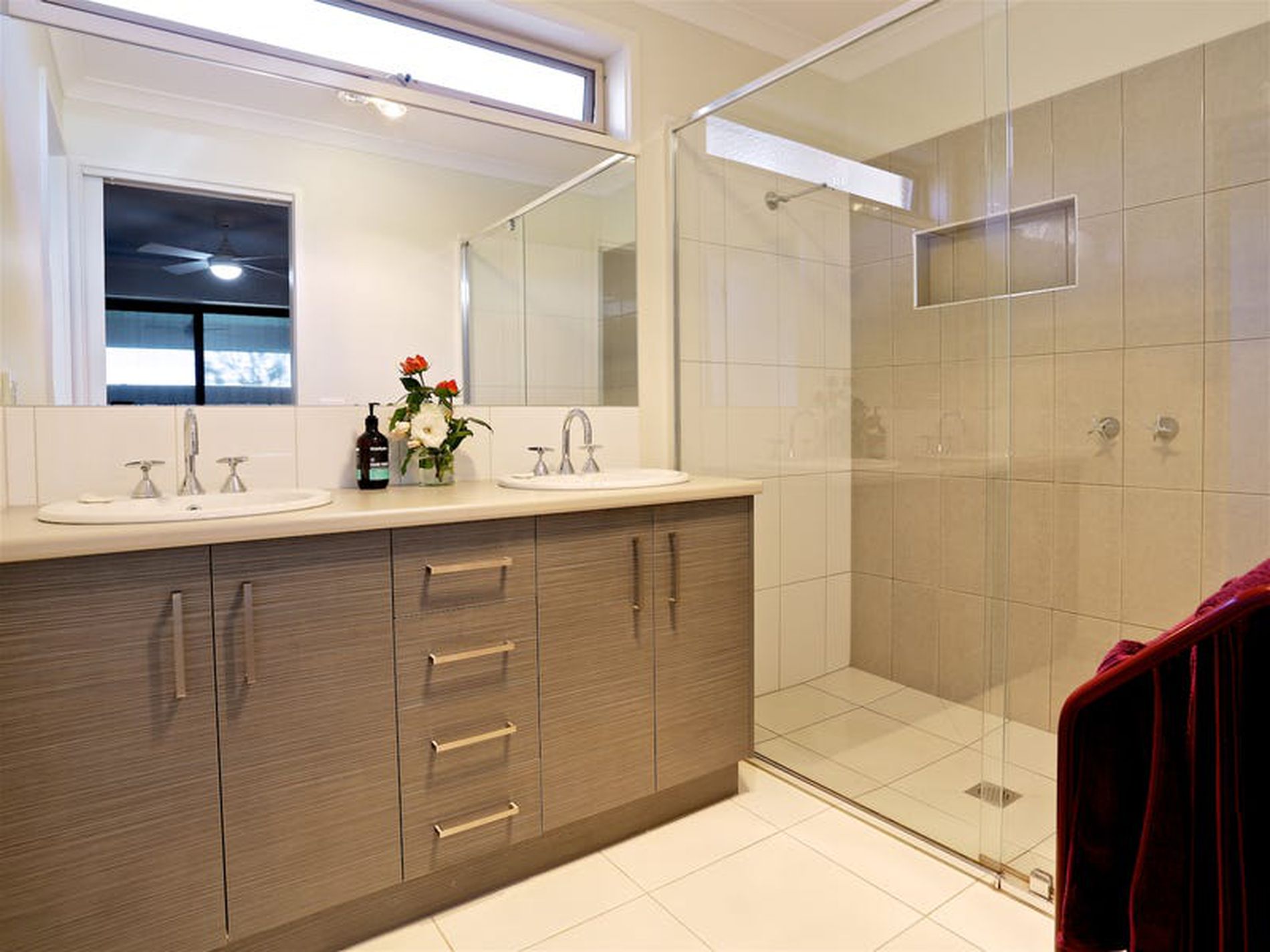 Master Bedroom with WIR, Ensuite - boasting double vanity & double shower, and sliding doors opening up to a private under roof outdoor entertaining area.