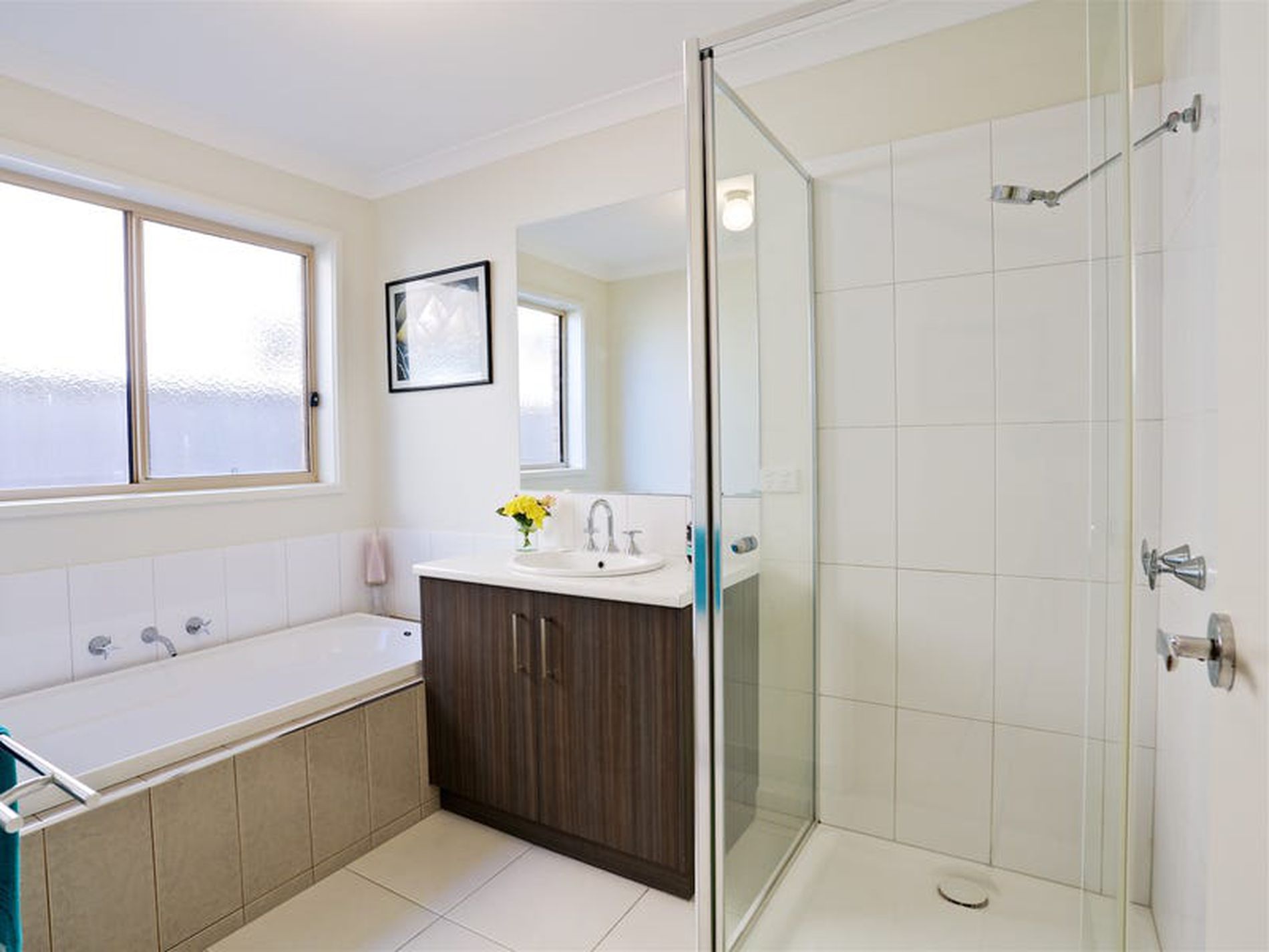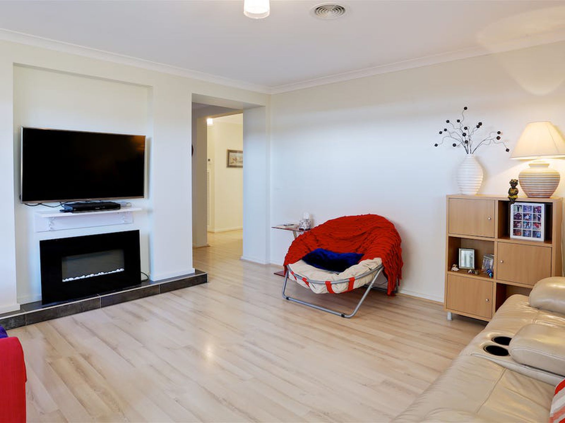 Separate large Formal Living to the front of the home, and a cosy main Family Room enjoying an electric flame fireplace.