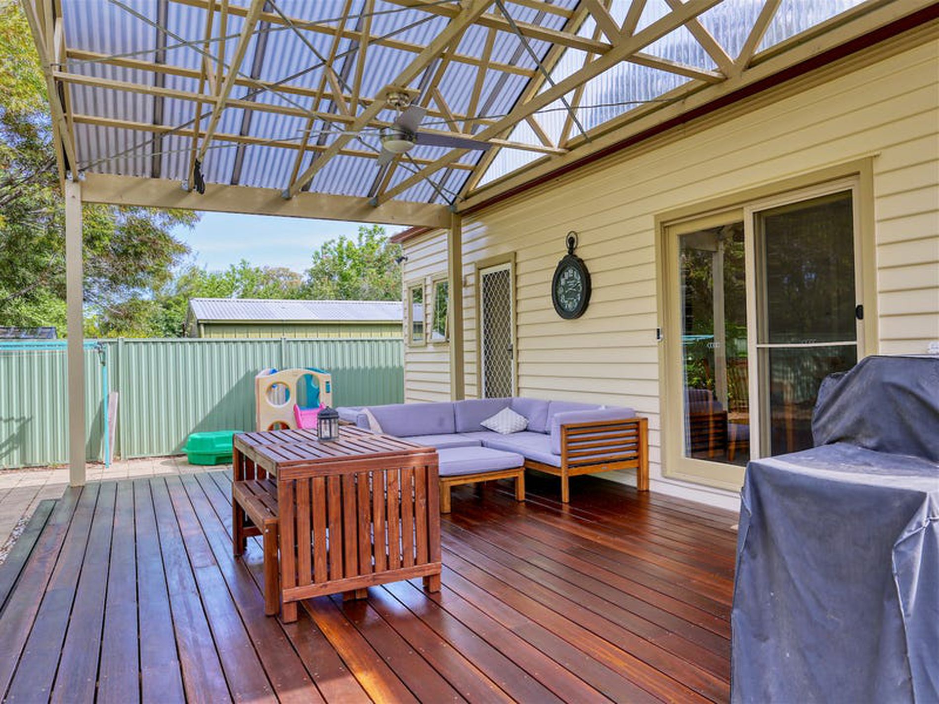 * 14m x 7m under-roof shed area (2 bay shed, 2 car carport)