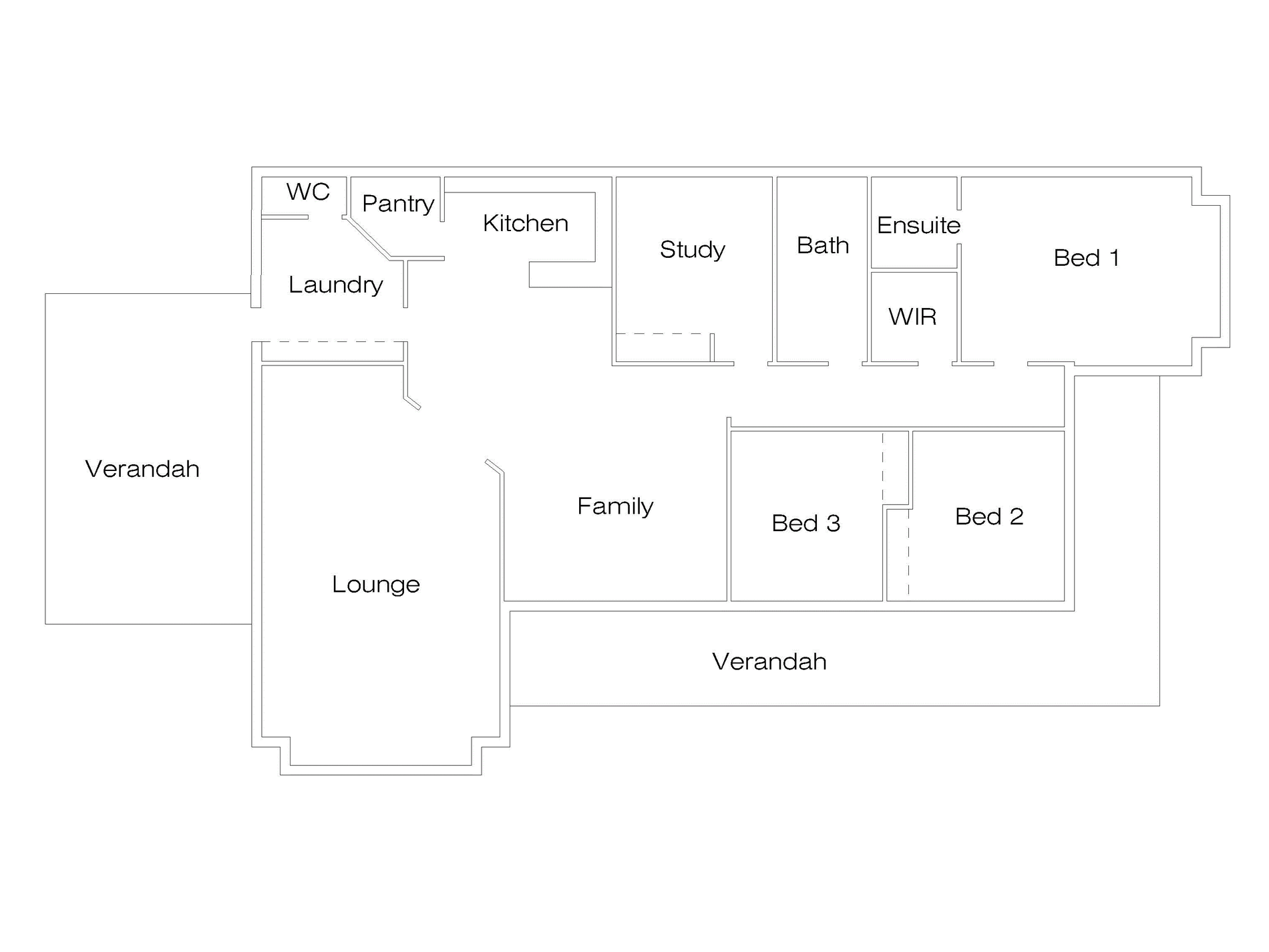 * Open plan kitchen with WIP, meals and family area with french doors opening to side verandah