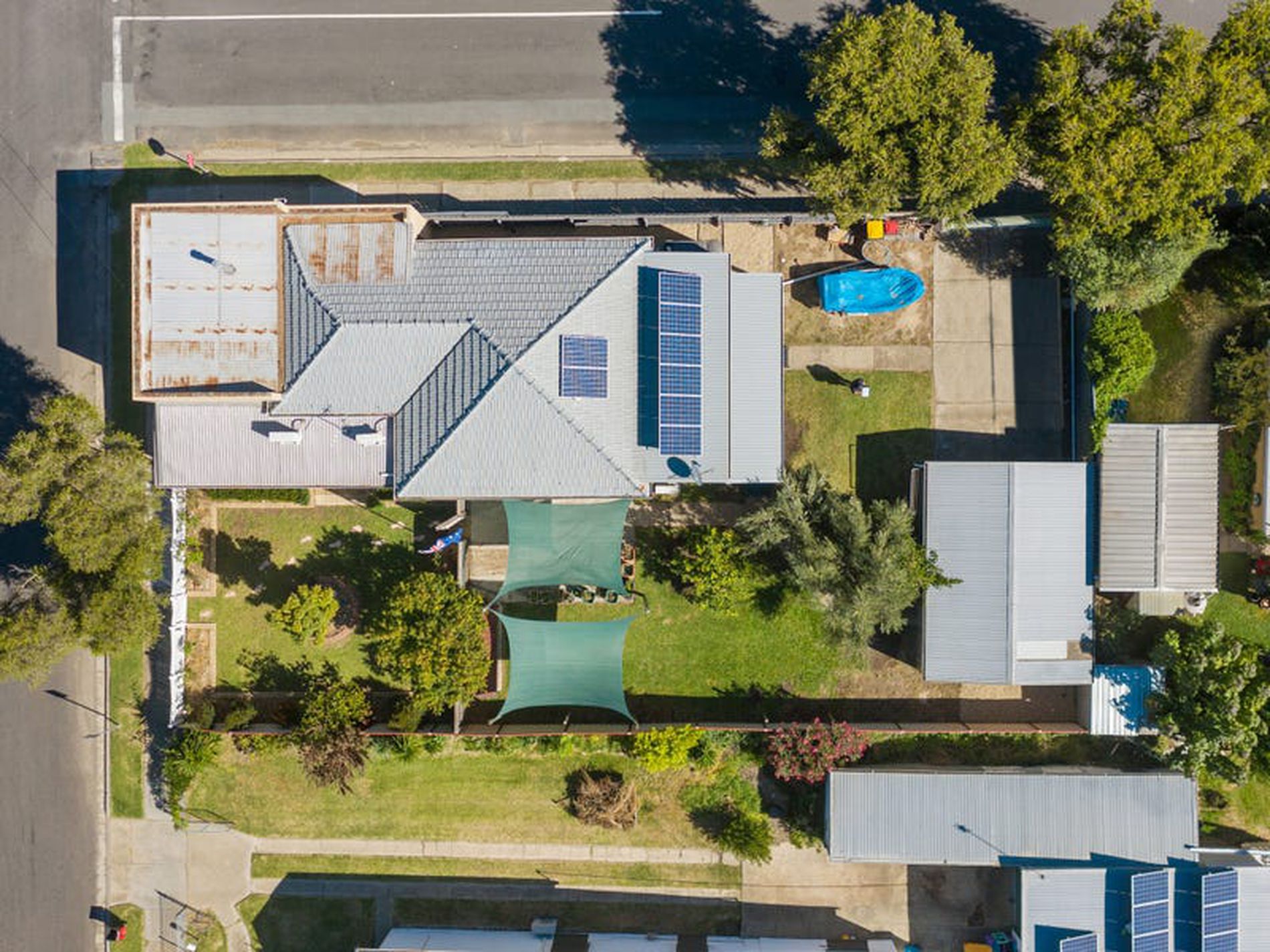 - Solar panels and water tank.