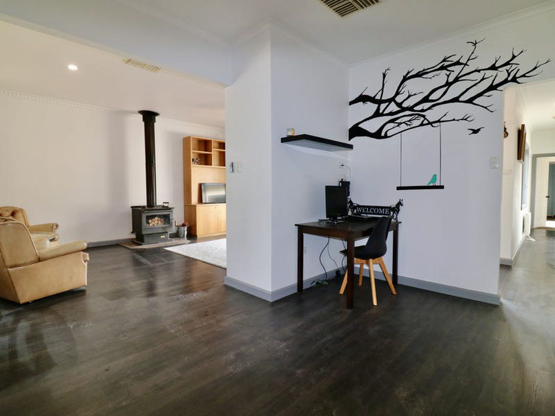 Outside, tranquil and peacefull offering shedding, large dam, fenced paddocks, water tanks and fruit trees. An ideal place to spend your weekends after a busy working week.