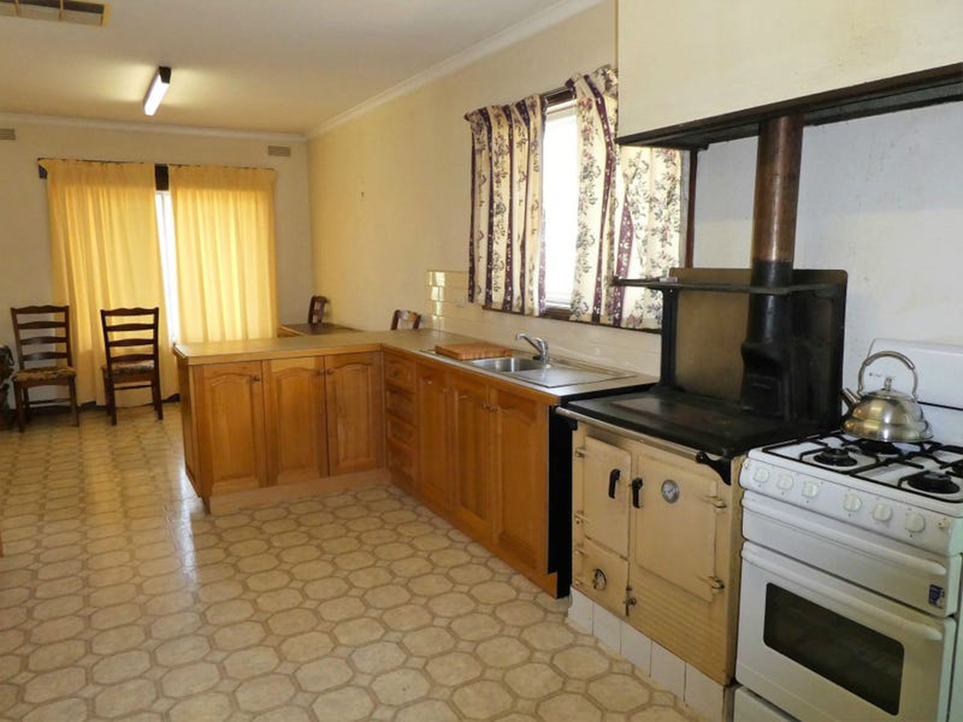 - Tasmanian Oak kitchen with ample cupboard space and dining area