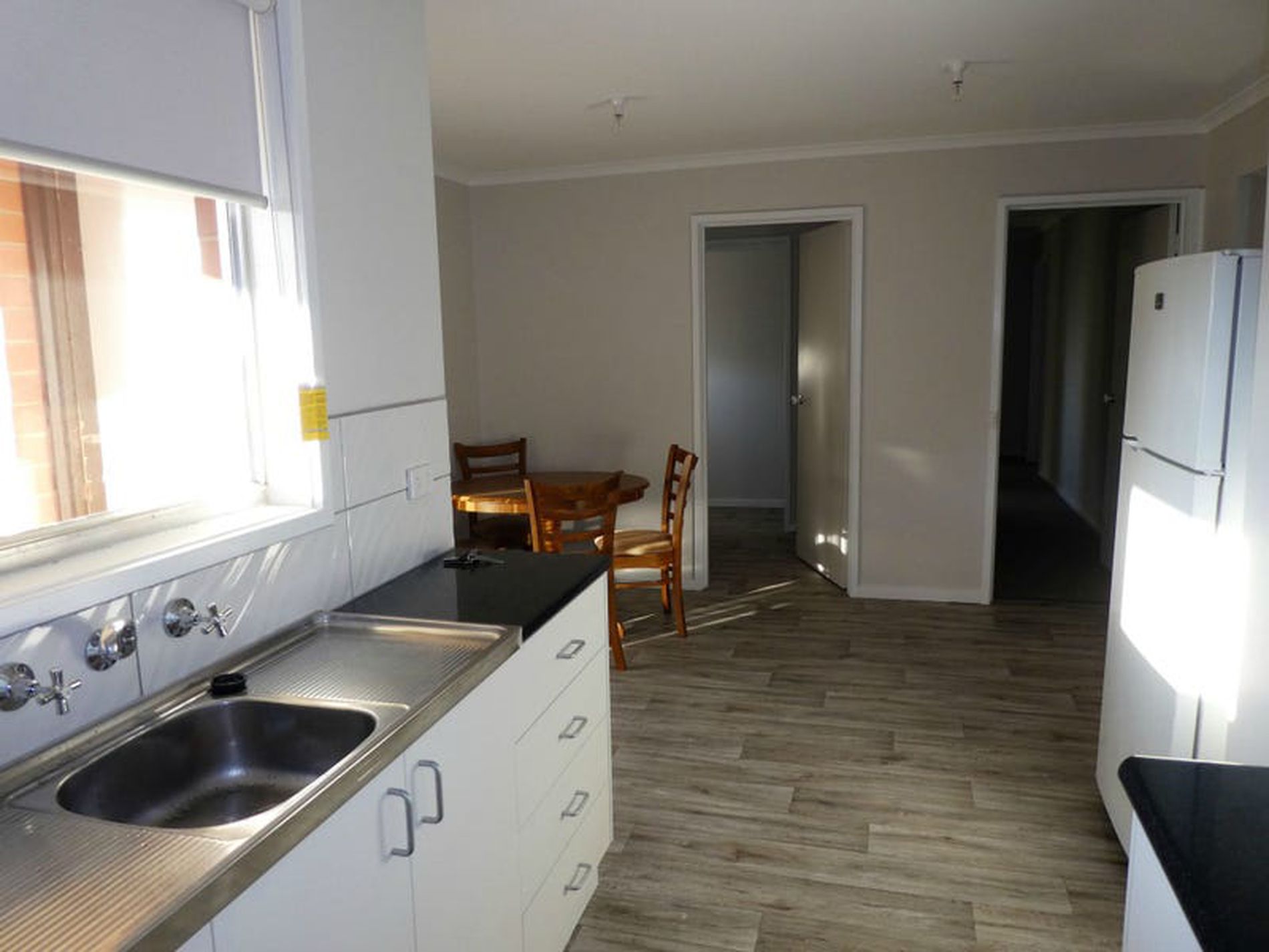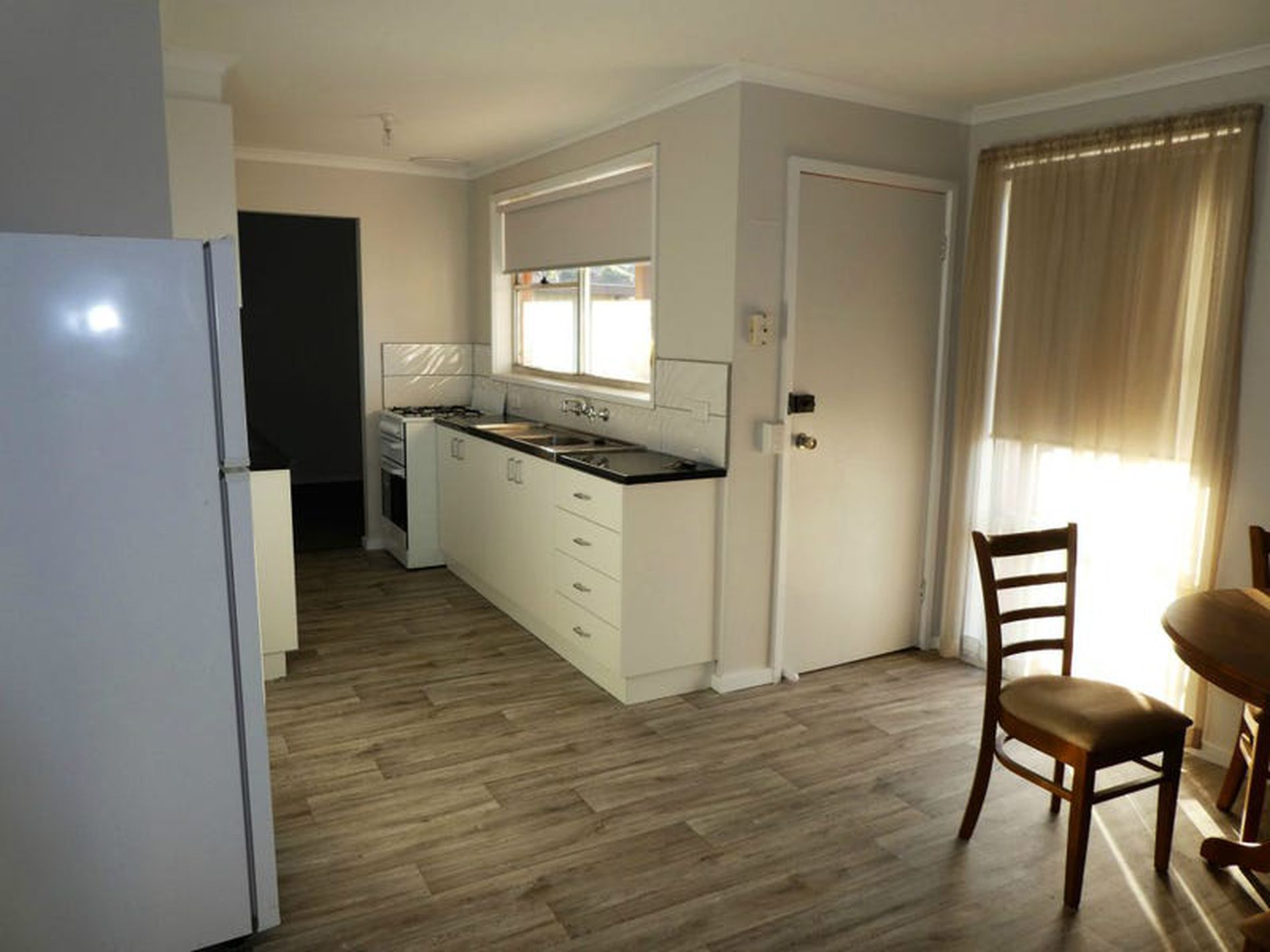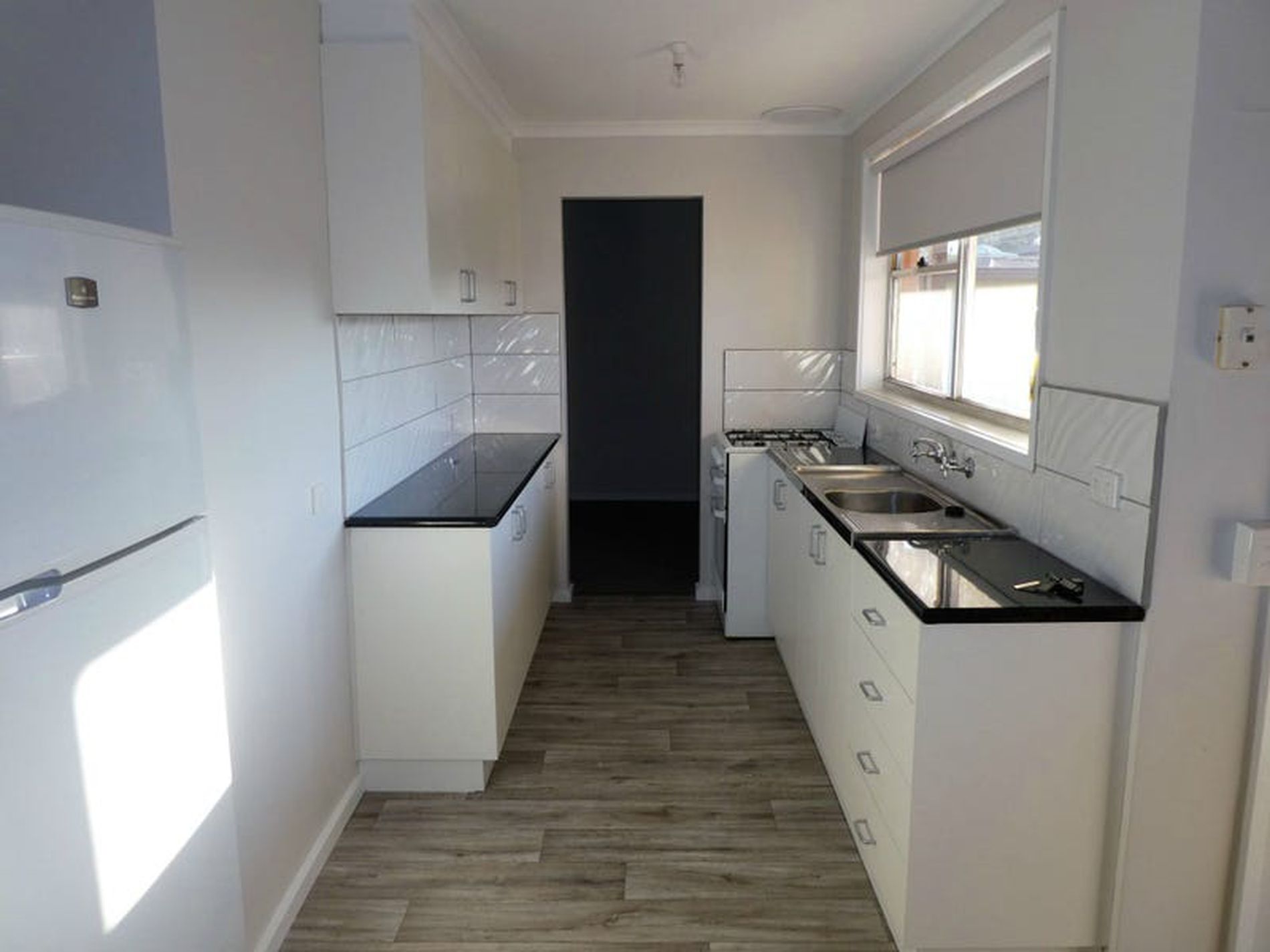 - New galley style kitchen with dining area