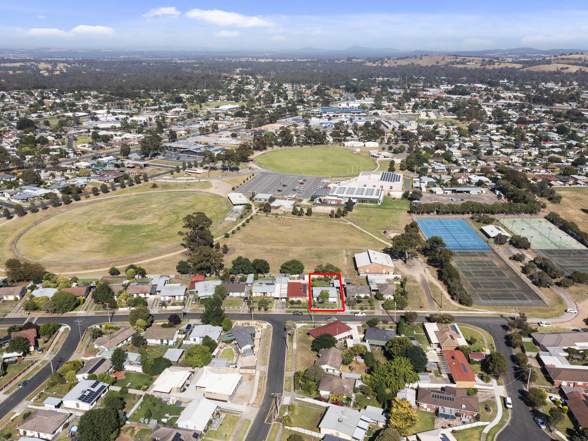 - Flat block with rear gate access to sporting facilities, skate park and Village shopping complex.