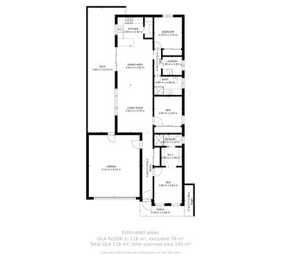 - Good size open plan kitchen, meals and living zone with custom built cabinetry.