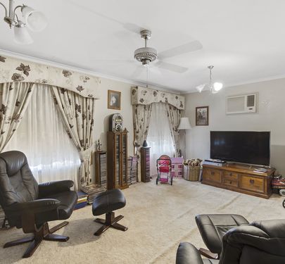 A neat and tidy home set on a shady block with ample car accommodation and shedding.